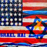 Dan Groover celebrates the friendship between the USA and Israel patriotically in his original unique work ‘Am Israel Hai’. Groover illustrates this bond in merging the US flag with the Israeli star of David in his bold bright painting, placing the Hostage ribbon within one larger star. He playfully replaces stars on the US flag with 18 Magen David stars of David, which is the numerical for Hai/Life of Israel and relationship with USA. Creating a new version of the star-spangled banner of the United States in this creative and bold visual statement.