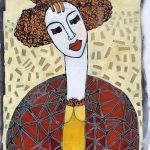 Avi Ben Simchon uses his signature inverse collage technique in the creation of ‘Asleep in the snow. The beautiful woman is depicted with her eyes closed to the backdrop of falling snow, her textured hair in its natural curl, she wears a red patterned cardigan over a bright yellow dress peeking through. Her peaceful expression in rest exudes a sense of feminine elegance and calming energy. Avi uses his revolutionary inverse collage process in this piece, painting using a special absorbing material he created on top of mixed media on Steinbach paper, before adding color back to the textured piece with oil paint. The result is an outstanding portrait of colors and texture with every single brushstroke. Inspired by cubism and fauvism, Avi communicates layers of emotion in his depiction of various women, setting a mood through their raw stances and expression. Contact us regarding the price and availability of this piece. We ship worldwide.