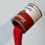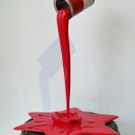 Kapiano crafts the pop art inspired series Paint Drop, a series of kinetic sculptures capturing the illusion of a can mid pour. In this dynamic piece, the puddle of paint pours from the iconic Campbells soup can, made famous by Andy Warhol, a famous figure of the Pop Art movement. The flow of bright red paint appears to freeze, the sculpture standing its contents static upside down. This creative sculpture comes in various colors and styles, contact us for more information.