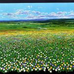 Flower Fields is an original 3D landscape oil painting, depicting peaceful green meadows and preserved flowers on board. Each flower and branch is preserved, filling the foreground of the painting with a bursting array of colors and shapes. The observer’s eye can get lost in the sweeping meadows, being drawn back and forth between the vibrant colors and textures layering this mesmerizing masterpiece.