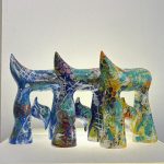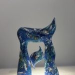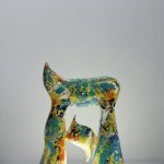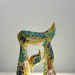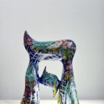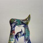 Nouna’s ‘Chai’ sculpture connects the letters making up the Hebrew word ‘Chai’ meaning Life in English. Her signature style is cleanly crafted from resin; in this unique version of the series the piece is hand painted in a variety of bold colors. The dynamic sculpture is a celebration of vitality, perseverance and pride. Nouna patented the design of the sculpture’s unique, interconnected shape.