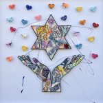 Kapiano’s ‘Love Magen David’ is a composite artwork, centered around the Magen David, a national, iconic, Israeli and Jewish symbol of pride and perseverance. Boldly designed, Kapiano filled the symbol with graffiti style slogans in Hebrew and English, elevating it over canvas for added dimension. Underneath a pair of hands are illustrated upturned in a bright pop art style, surrounded by hand painted hearts laser cut from metal. Contact us regarding availability for this piece or for any more information.