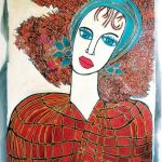 ‘Redhead’ is a portrait impression of a uniquely beautiful woman. Avi captures the viewers’ eyes in his bold choice of colors and texture, highlighting the subjects’ bright blue eyes in contrast to their natural, fiery red hair, lips and clothing. The woman’s head tilts slightly as she faces forward, directly at the viewer. Inspired by cubism and fauvism, Avi Ben Simhon communicates layers of emotion in his depiction of various women, setting a mood through their raw stances and expression. Contact us regarding price and availability for this piece, we ship worldwide.