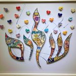 Kapiano’s Shalom is a pop art piece, spelling Shalom (In English Peace) in Hebrew in a graffiti style. He hand and spray paints metal cutouts before elevating them on canvas, filling the letters with English and Hebrew slogans. Shalom is framed with elevated cutouts of colorful hearts and paint splashes signature to Kapianos stylistic finish. The resulting stylish piece is a bold and colorful visual statement, infusing any space with passion and life. Contact us for more information and availability.
